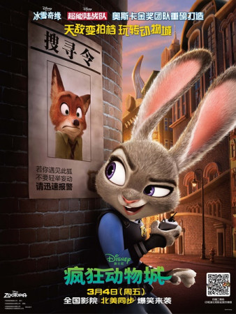 迪士尼动画片“疯狂动物城”又一周击败了所有竞争对手成为了中国电影市场最吸金的动画片